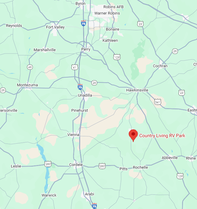 Country Living RV Park is situated near Rochelle, Georgia, offering a peaceful country setting with easy access to local attractions and everyday conveniences.